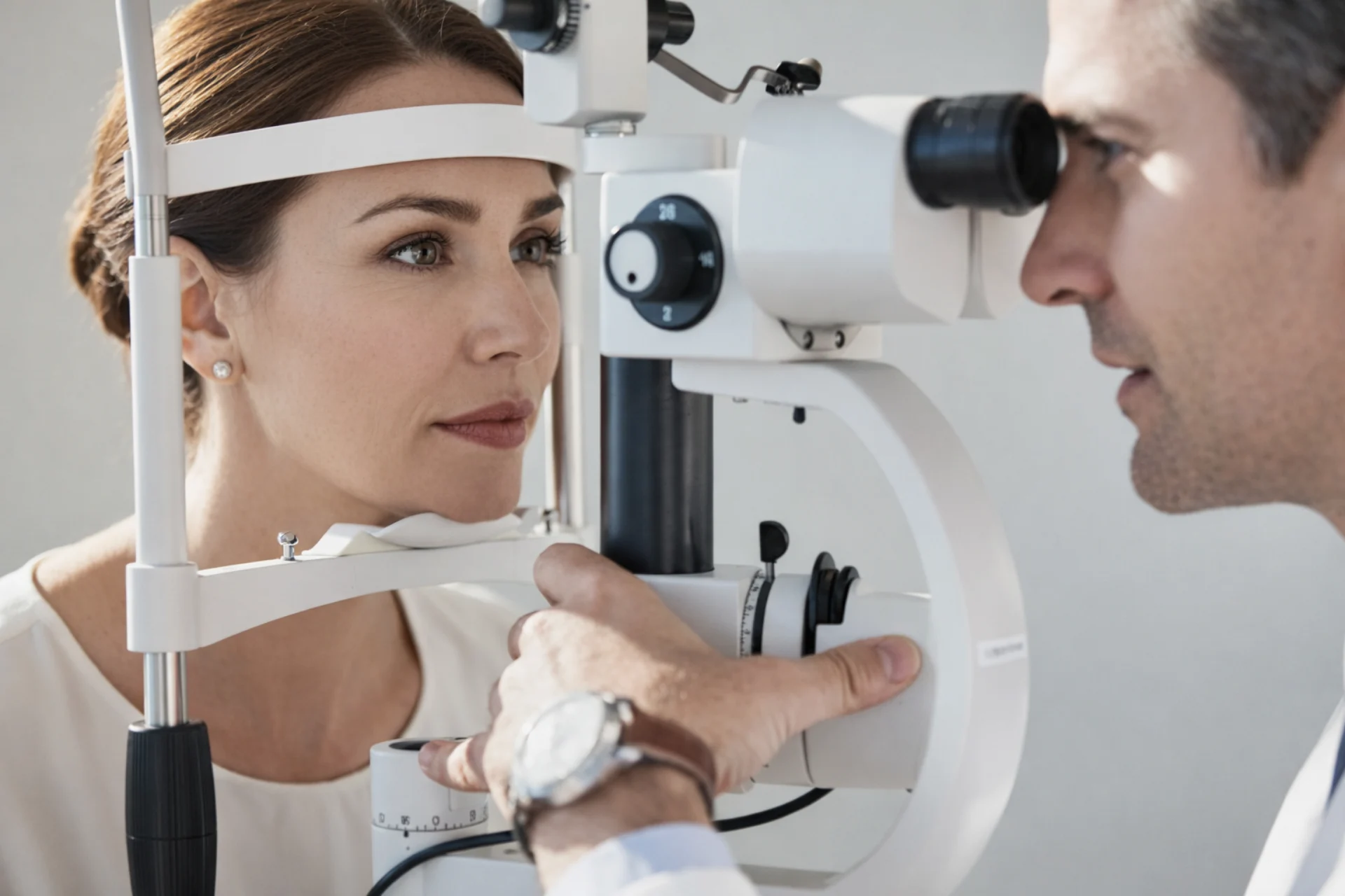 Kolejnym elementem badania jest ocena stanu oczu przeprowadzana przez lekarza okulistę. Lekarz bada przedni i tylny odcinek oka, w tym rogówkę, soczewkę, ciało szkliste oraz dno oka, co pozwala ocenić ogólny stan narządu wzroku. Badanie umożliwia sprawdzenie, czy nie występują zmiany chorobowe takie jak jaskra, zaćma, choroby siatkówki czy nerwu wzrokowego.